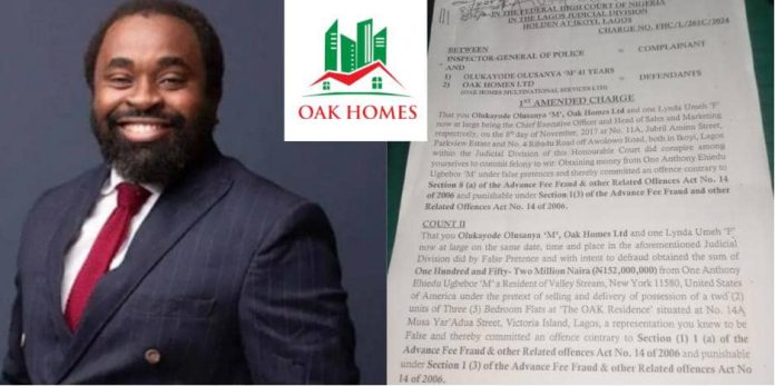 Olusanya, the Chief Executive Officer of Oak Homes Limited, is standing trial alongside the company on a four-count charge bordering on conspiracy, obtaining money by false pretence, fraud, and stealing, filed by the Nigerian Police Force.